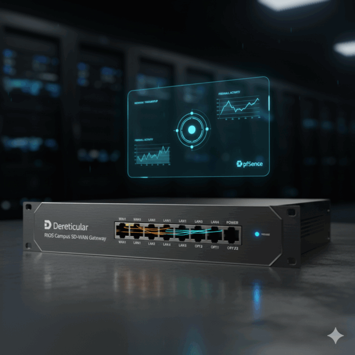 - Description: A pre-configured Netgate security gateway appliance running a custom pfSense software package. Acts as the central “brain” for the campus network, managing all traffic, failover, and security.