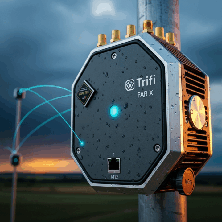 - Description: Weatherproof, omni-directional antennas paired with each Trifi Far X Router. Combines multiple cellular, Wi-Fi, and GPS antennas into a single, easy-to-install unit for maximum signal reception.
